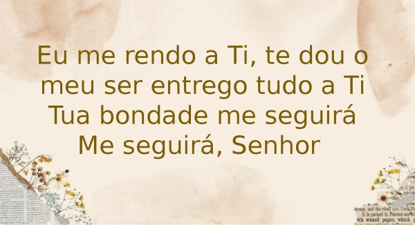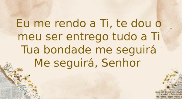- Eu me rendo a Ti, te dou o meu ser entrego tudo a TiTua bondade me seguiráMe seguirá, Senhor