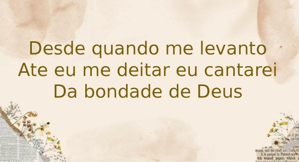 - Desde quando me levantoAte eu me deitar eu cantareiDa bondade de Deus
