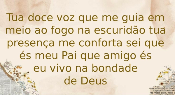 - Tua doce voz que me guia em meio ao fogo na escuridão tua presença me conforta sei que és meu Pai que amigo és eu vivo na bondade de Deus