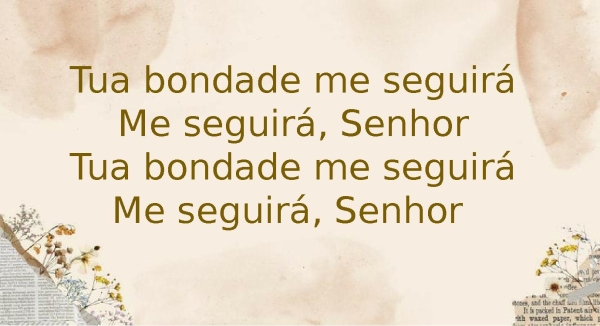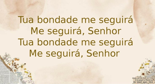 - Tua bondade me seguiráMe seguirá, SenhorTua bondade me seguiráMe seguirá, Senhor