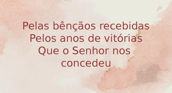 - Pelas bênçãos recebidasPelos anos de vitóriasQue o Senhor nos concedeu