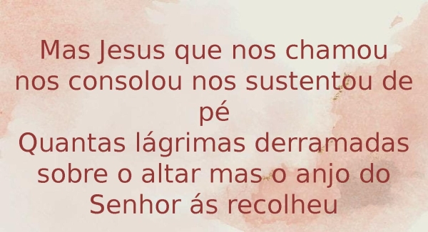 - Mas Jesus que nos chamou nos consolou nos sustentou de péQuantas lágrimas derramadas sobre o altar mas o anjo do Senhor ás recolheu