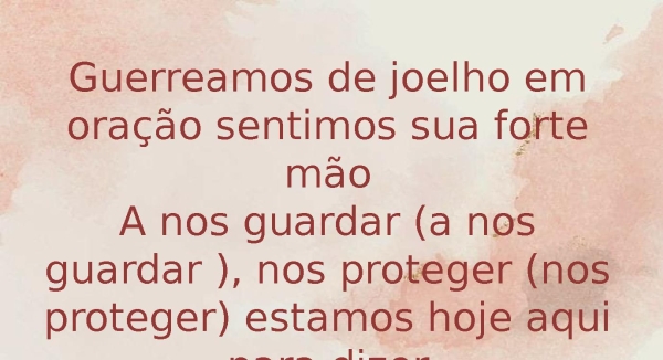 - Guerreamos de joelho em oração sentimos sua forte mãoA nos guardar (a nos guardar ), nos proteger (nos proteger) estamos hoje aqui para dizerValeu a pena!