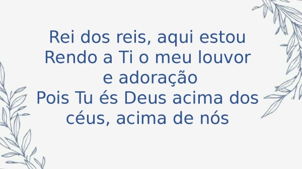 - Rei dos reis, aqui estouRendo a Ti o meu louvor e adoraçãoPois Tu és Deus acima dos céus, acima de nós
