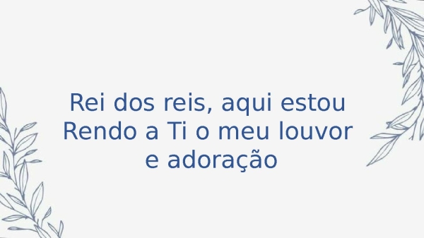 - Rei dos reis, aqui estouRendo a Ti o meu louvor e adoração