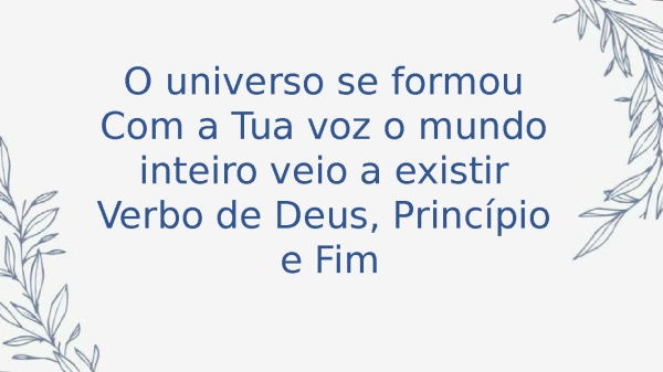 - O universo se formouCom a Tua voz o mundo inteiro veio a existirVerbo de Deus, Princípio e Fim