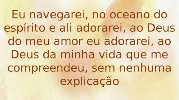 - Eu navegarei, no oceano do espírito e ali adorarei, ao Deus do meu amor eu adorarei, ao Deus da minha vida que me compreendeu, sem nenhuma explicação