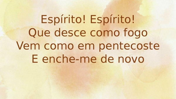 - Espírito! Espírito!Que desce como fogoVem como em pentecosteE enche-me de novo