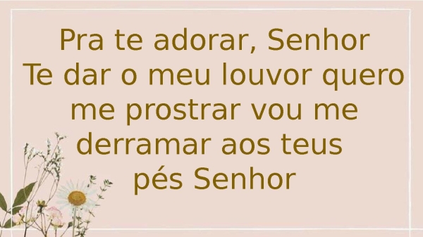 - Pra te adorar, SenhorTe dar o meu louvor quero me prostrar vou me derramar aos teus pés Senhor