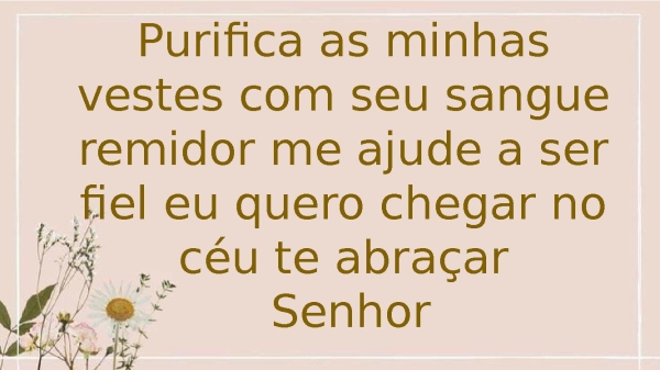 - Purifica as minhas vestes com seu sangue remidor me ajude a ser fiel eu quero chegar no céu te abraçar Senhor