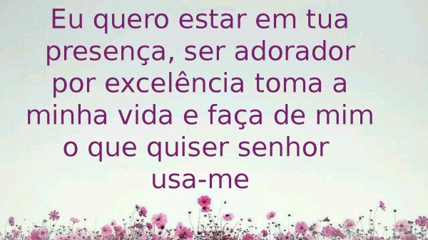 - Eu quero estar em tua presença, ser adorador por excelência toma a minha vida e faça de mim o que quiser senhor usa-me