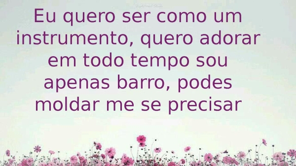- Eu quero ser como um instrumento, quero adorar em todo tempo sou apenas barro, podes moldar me se precisar