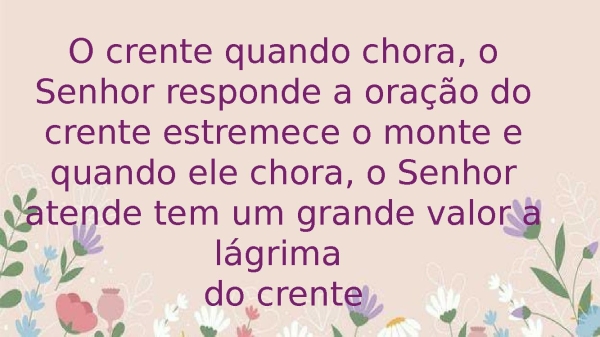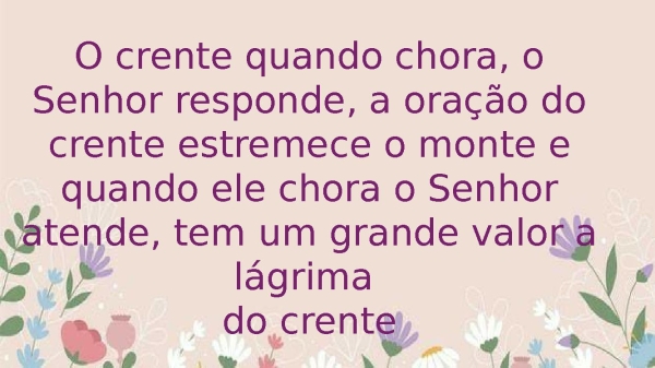 - O crente quando chora, o Senhor responde, a oração do crente estremece o monte e quando ele chora o Senhor atende, tem um grande valor a lágrima do crente