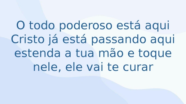 - O todo poderoso está aqui Cristo já está passando aqui estenda a tua mão e toque nele, ele vai te curar