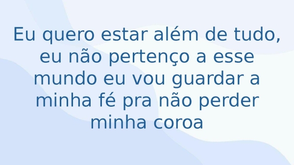 - Eu quero estar além de tudo, eu não pertenço a esse mundo eu vou guardar a minha fé pra não perder minha coroa