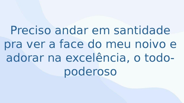 - Preciso andar em santidade pra ver a face do meu noivo e adorar na excelência, o todo-poderoso