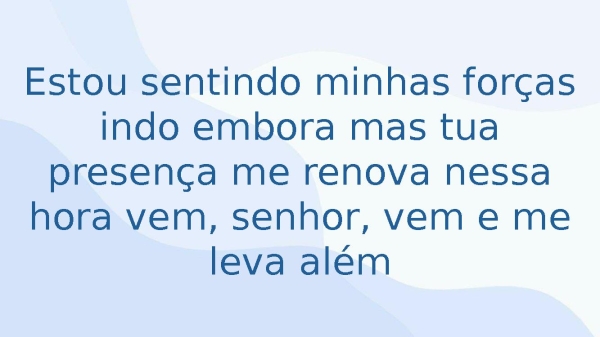 - Estou sentindo minhas forças indo embora mas tua presença me renova nessa hora vem, senhor, vem e me leva além