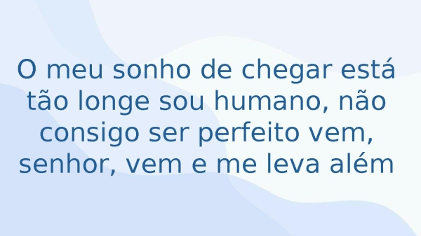 - O meu sonho de chegar está tão longe sou humano, não consigo ser perfeito vem, senhor, vem e me leva além