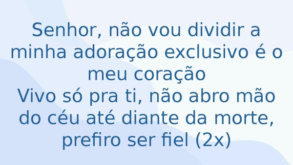 - Senhor, não vou dividir a minha adoração exclusivo é o meu coraçãoVivo só pra ti, não abro mão do céu até diante da morte, prefiro ser fiel (2x)