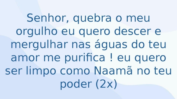 - Senhor, quebra o meu orgulho eu quero descer e mergulhar nas águas do teu amor me purifica ! eu quero ser limpo como Naamã no teu poder (2x)