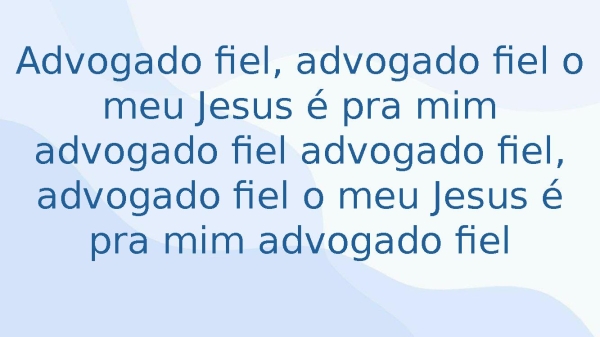 - Advogado fiel, advogado fiel o meu Jesus é pra mim advogado fiel advogado fiel, advogado fiel o meu Jesus é pra mim advogado fiel