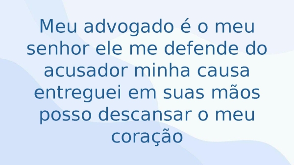 - Meu advogado é o meu senhor ele me defende do acusador minha causa entreguei em suas mãos posso descansar o meu coração