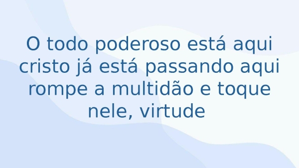 - O todo poderoso está aqui cristo já está passando aqui rompe a multidão e toque nele, virtude