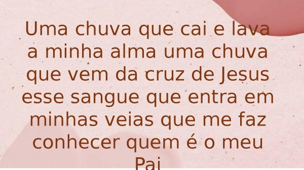 - Uma chuva que cai e lava a minha alma uma chuva que vem da cruz de Jesus esse sangue que entra em minhas veias que me faz conhecer quem é o meu Pai