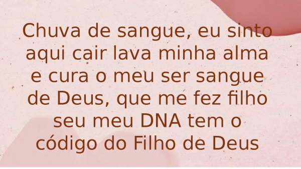 - Chuva de sangue, eu sinto aqui cair lava minha alma e cura o meu ser sangue de Deus, que me fez filho seu meu DNA tem o código do Filho de Deus