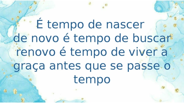 - É tempo de nascer de novo é tempo de buscar renovo é tempo de viver a graça antes que se passe o tempo