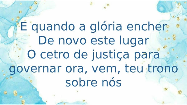 - E quando a glória encherDe novo este lugarO cetro de justiça para governar ora, vem, teu trono sobre nós
