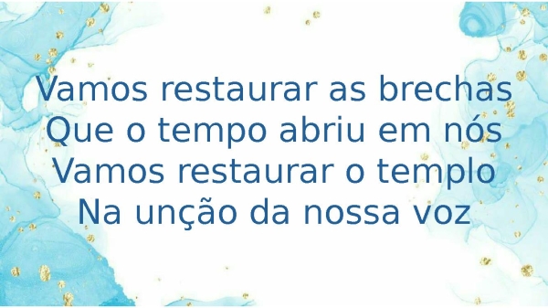 - Vamos restaurar as brechasQue o tempo abriu em nósVamos restaurar o temploNa unção da nossa voz