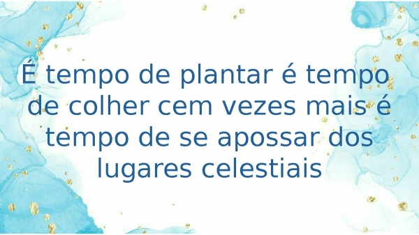 - É tempo de plantar é tempo de colher cem vezes mais é tempo de se apossar dos lugares celestiais
