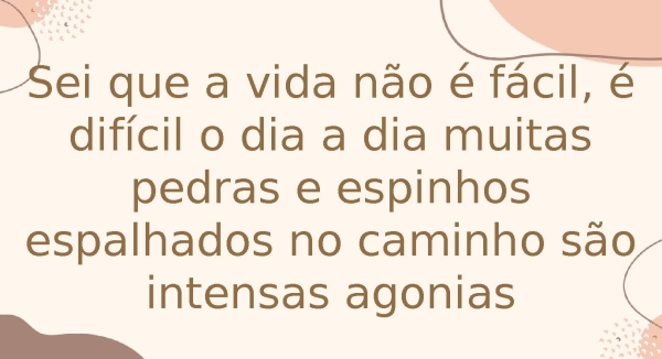- Sei que a vida não é fácil, é difícil o dia a dia muitas pedras e espinhos espalhados no caminho são intensas agonias