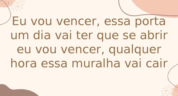 - Eu vou vencer, essa porta um dia vai ter que se abrir eu vou vencer, qualquer hora essa muralha vai cair