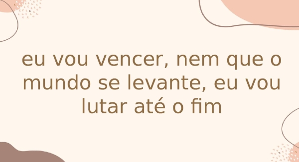 - eu vou vencer, nem que o mundo se levante, eu vou lutar até o fim