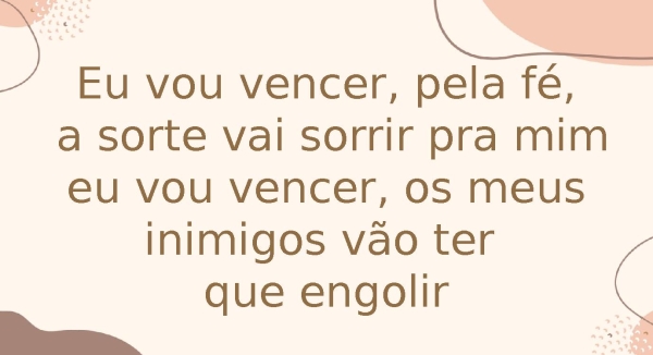 - Eu vou vencer, pela fé, a sorte vai sorrir pra mim eu vou vencer, os meus inimigos vão ter que engolir