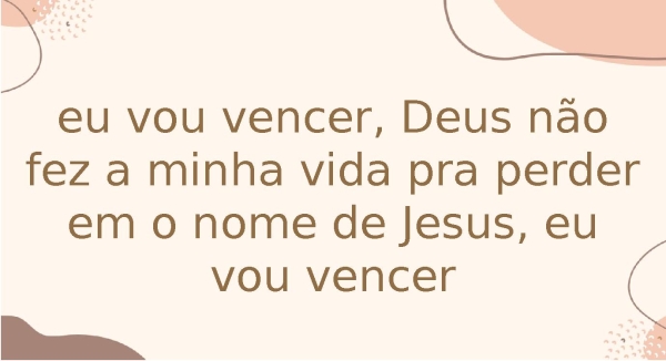 - eu vou vencer, Deus não fez a minha vida pra perder em o nome de Jesus, eu vou vencer