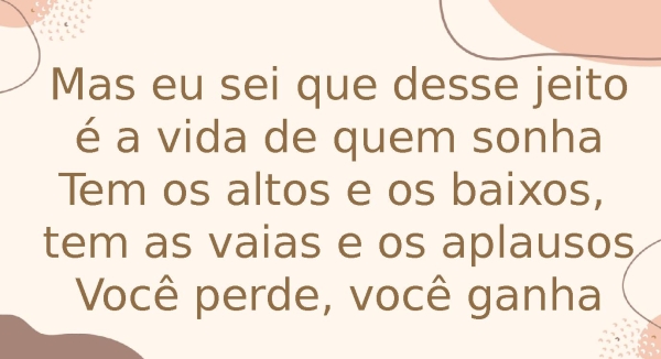 - Mas eu sei que desse jeito é a vida de quem sonhaTem os altos e os baixos, tem as vaias e os aplausosVocê perde, você ganha