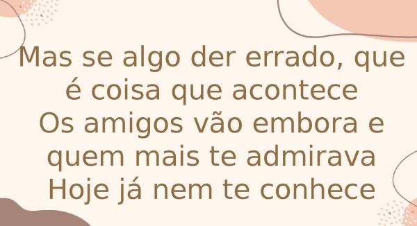 - Mas se algo der errado, que é coisa que aconteceOs amigos vão embora e quem mais te admiravaHoje já nem te conhece
