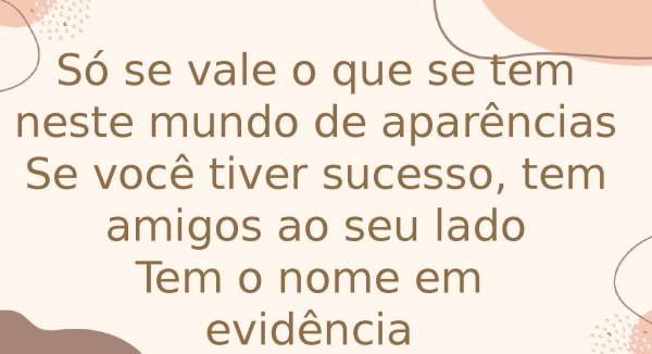 - Só se vale o que se tem neste mundo de aparênciasSe você tiver sucesso, tem amigos ao seu ladoTem o nome em evidência