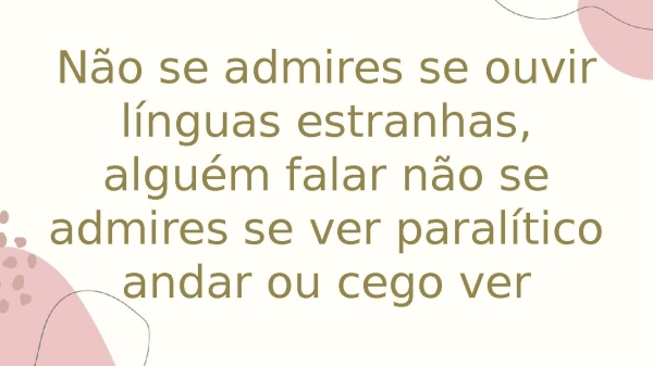 - Não se admires se ouvir línguas estranhas, alguém falar não se admires se ver paralítico andar ou cego ver