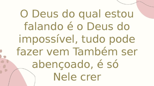 - O Deus do qual estou falando é o Deus do impossível, tudo pode fazer vem Também ser abençoado, é só Nele crer