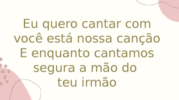 - Eu quero cantar com você está nossa cançãoE enquanto cantamos segura a mão do teu irmão