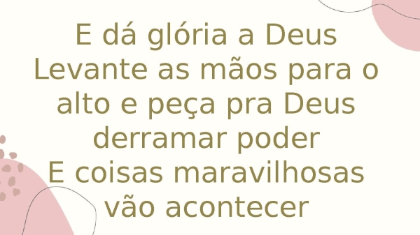 - E dá glória a DeusLevante as mãos para o alto e peça pra Deus derramar poder e coisas maravilhosas vão acontecer