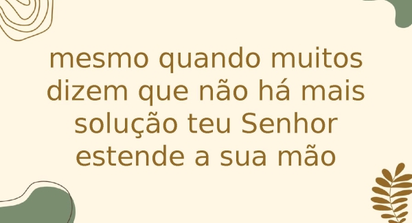 - mesmo quando muitos dizem que não há mais solução teu Senhor estende a sua mão