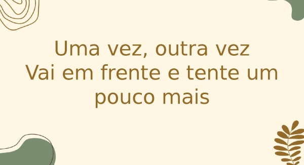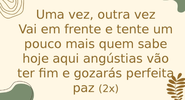 - Uma vez, outra vezVai em frente e tente um pouco mais quem sabe hoje aqui angústias vão ter fim e gozarás perfeita paz (2x)