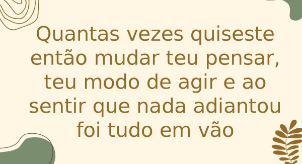 - Quantas vezes quiseste então mudar teu pensar, teu modo de agir e ao sentir que nada adiantou foi tudo em vão