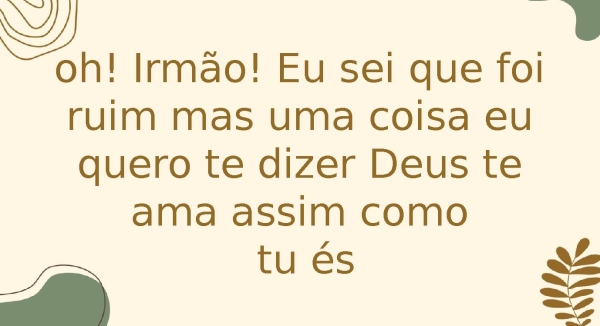 - oh! Irmão! Eu sei que foi ruim mas uma coisa eu quero te dizer Deus te ama assim como tu és