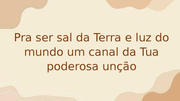 - Pra ser sal da Terra e luz do mundo um canal da Tua poderosa unção